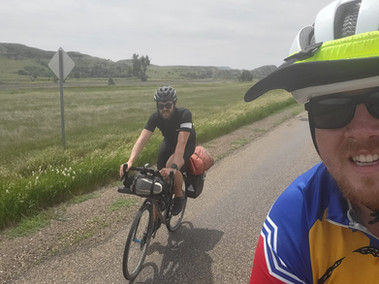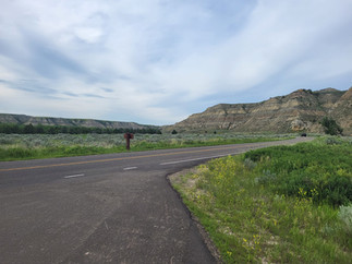 Not long after the border things were looking up. We pulled into the town of Beech, ND and the mood was pleasant and the people were kind, and the local Buzzy Cafe was just what I needed to try and shake the dust off my feet. Had a breakfast hashbrown that was an omelette but without the eggs. And then we continued towards the badlands of ND. The scenery slowly became more badlandish. Super pretty and scenic. But that was tempered by the wind. It just didn't seem to want to stop. When you seemed to shift around a curve, the wind shifted with you.