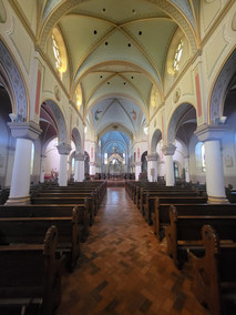 We then stopped at St. Mary's Church and Assumption Abbey in Richardton, ND. 27 monks call this place home. A chance to sit in the grace and presence of God was so welcomed. Peace, calm, and quiet greeted me. The only sound was the gentle trickle of the baptismal font. Light streamed in through hand painted stained glass windows. The art style reminds me of my own home parish, St. Adrian, in Adrian, MN. I asked at the information desk when the church was built. Learned it was just a couple years after St. Adrian so it's possible that the heritage of the glass could be similar.
